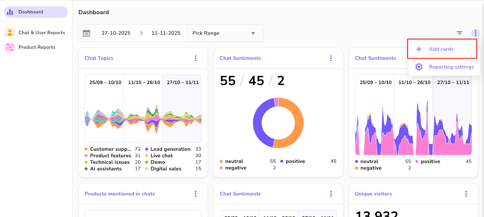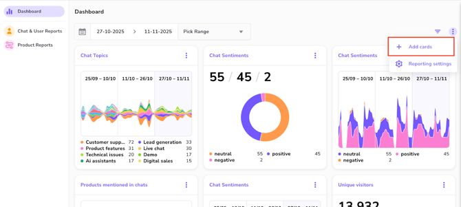 Once your AI Chat Labeling metric is created and actively processing data (or receiving data via API), you can add it to your own Reporting Dashboard for visualization and analysis.