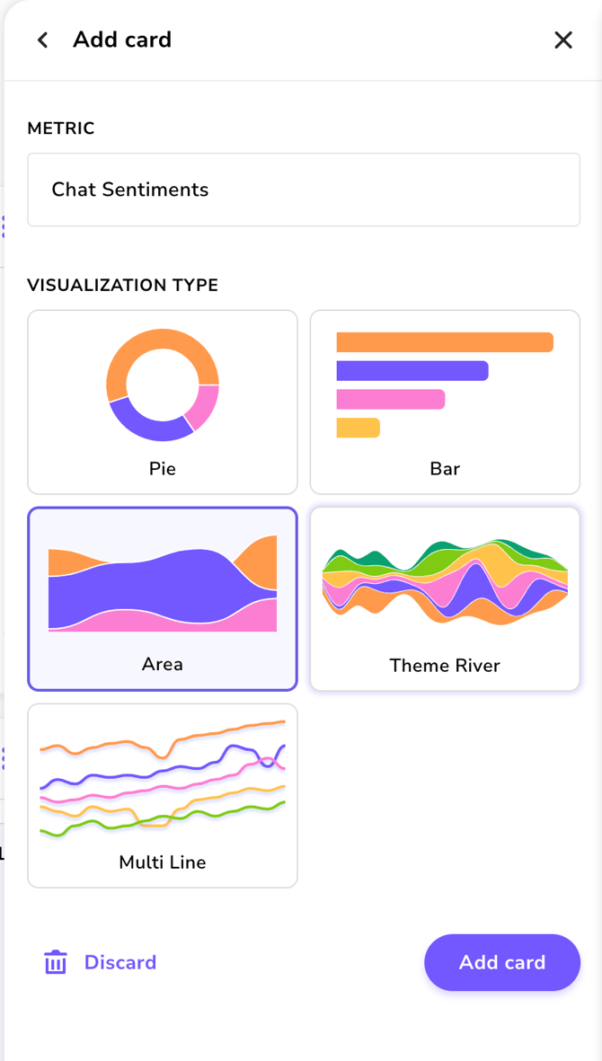 - Visualization: You can choose the visualization type for your card that you think is the most suitable. Note that not all visualization types are available for all metric types.