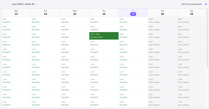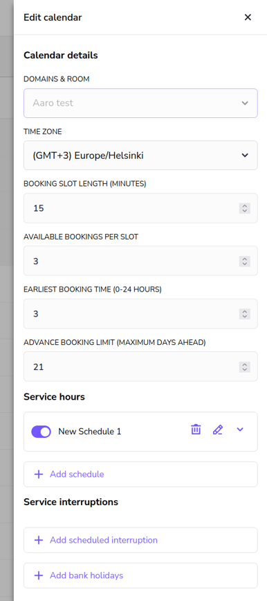 - Specify the Slot length (in minutes) and the Available bookings per slot.